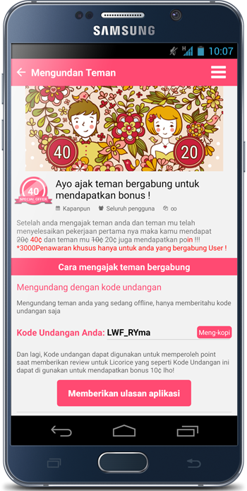 さらに、5人招待すると6人目以降は40¢もらえちゃう!