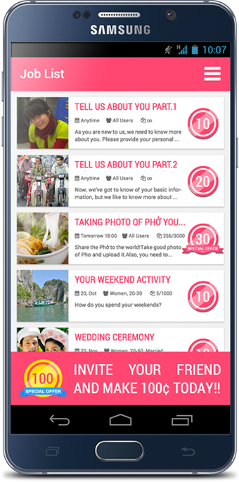 昼休みや寝る前などの空いた時間に企業からのアンケートに答えるだけで、1問10¢〜100¢相当のポイントがもらえます。