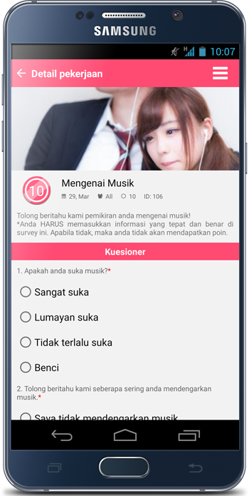 アンケートは、「あなたの好きな映画はなんですか?」や、「今日のお昼に食べた料理の写真を送ってください」など、簡単なものばかり!