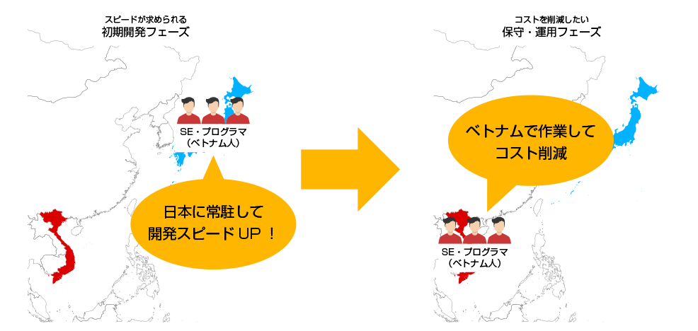 スキーム例1:初期開発は日本常駐・保守運用はオフショアで